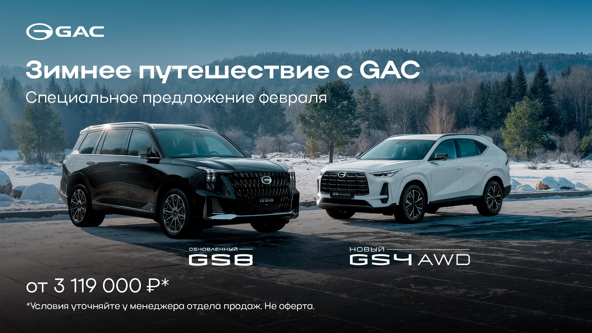 * Указанная стоимость нового автомобиля марки GAC предоставляется покупателю при сдаче автомобиля в «трейд-ин» и при покупке автомобиля в кредит. Не оферта. Программа действует до 30.11.2025. АО «Авилон Автомобильная Группа» вправе изменить сроки действия акции и условия предоставления скидки. Подробности уточняйте в отделе продаж GAC АВИЛОН.